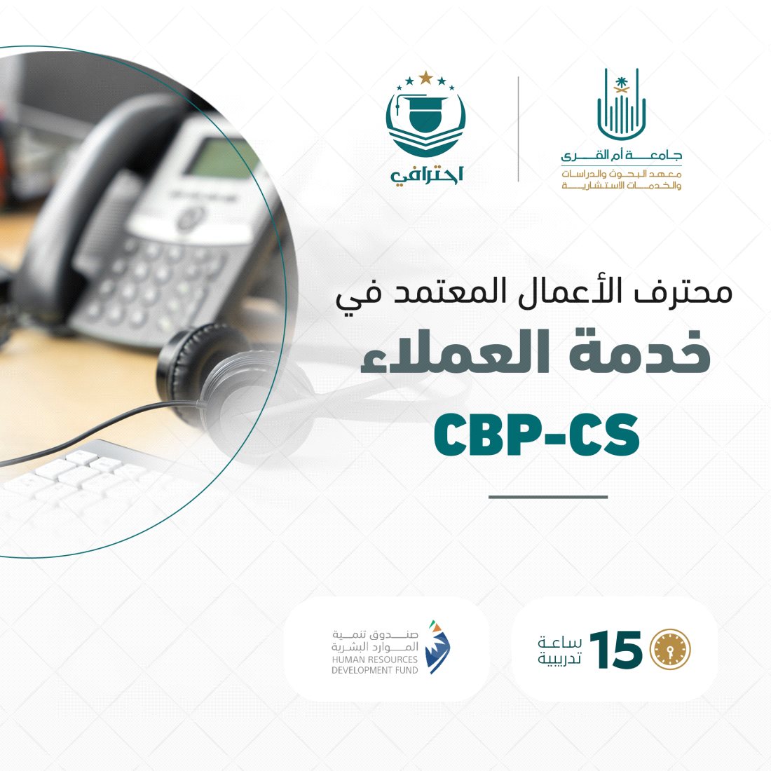 برنامج يتضمّن تدريبًا مكثفًا واختبارا للحصول على شهادة محترف الأعمال المعتمد في خدمة العملاء من جمعية تدريب الأعمال الدولية (IBTA). البرنامج مسترد الرسوم بالكامل من صندوق تنمية الموارد البشرية "هدف"، ويتم من خلاله تزويد المتدربين بمجموعة من المعلومات والمهارات الأساسية المطلوبة لامتلاك سلوكياتٍ احترافية فعّالة في مجال خدمة العملاء، كما يوفر الأسس المثالية لجودة خدمة العملاء ويركز على بناء العلاقات مع العملاء بتطوير استراتيجيات فعالة وسيناريوهات متعددة من خلال تمارين متنوّعة نظرية وعمليّة وأمثلة وسيناريوهات واقعية لتوفير التميز في الخدمات وفقا لأحدث المعايير الدولية المتّبعة في التواصل الاحترافي.