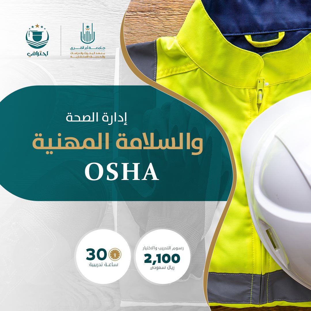 صمّم هذا البرنامج لتلبية احتياجات العاملين في مجال السلامة والصحة المهنية للحصول على تدريب متقدم متوافق مع معايير الأوشا OSHA 30 حيث يقدم البرنامج تدريباً متقدماً لفهم سياسات وإجراءات ومعايير السلامة والصحة المهنية بالإضافة إلى مبادئي السلامة والصحة المهنية في الصناعات العامة والتي يغطيها قانون الأوشا، وسيتم التركيز بشكل خاص على المجالات الأكثر خطورة باستخدام معايير OSHA.